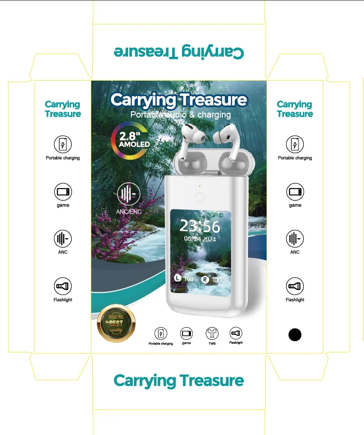 Meet the TF20 Box – a next-level three-in-one device that combines premium wireless earbuds, a power bank, and a 2.8'' multimedia screen for a complete entertainment and utility experience on the go. These Bluetooth earbuds deliver bass-boosted sound quality and feature dark noise reduction for immersive audio whether you're listening to music, gaming, or taking calls.